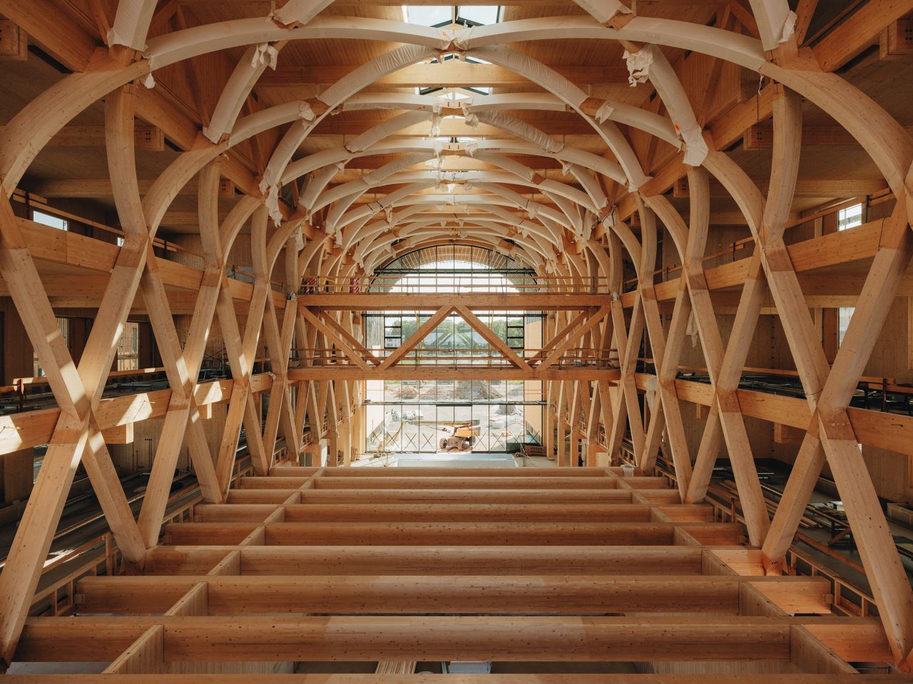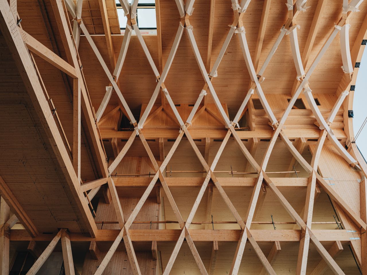 BSH-Bauteile (4300 m³ CLT und 980 m³ BSH), EstNor für die Fassaden und Dächer