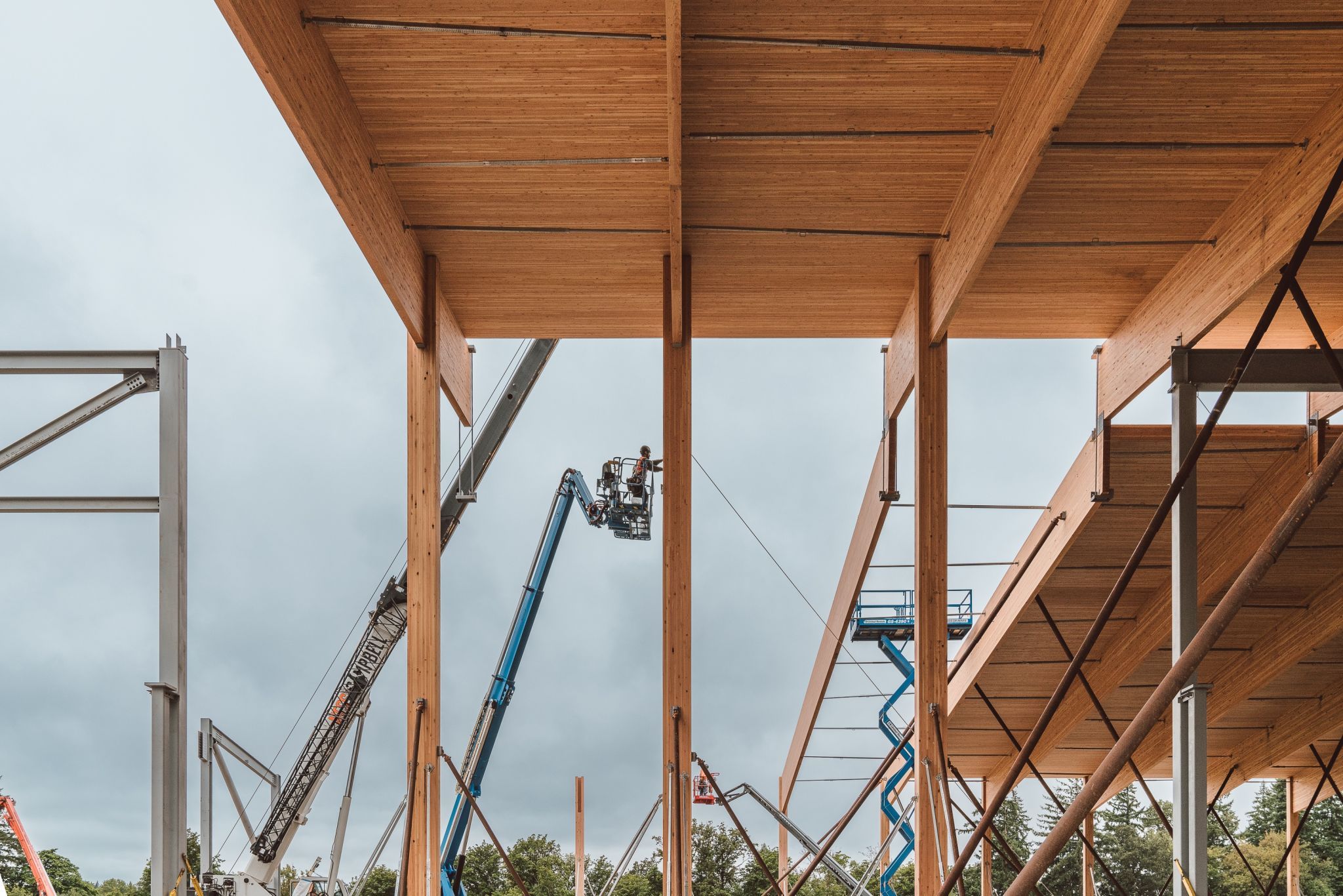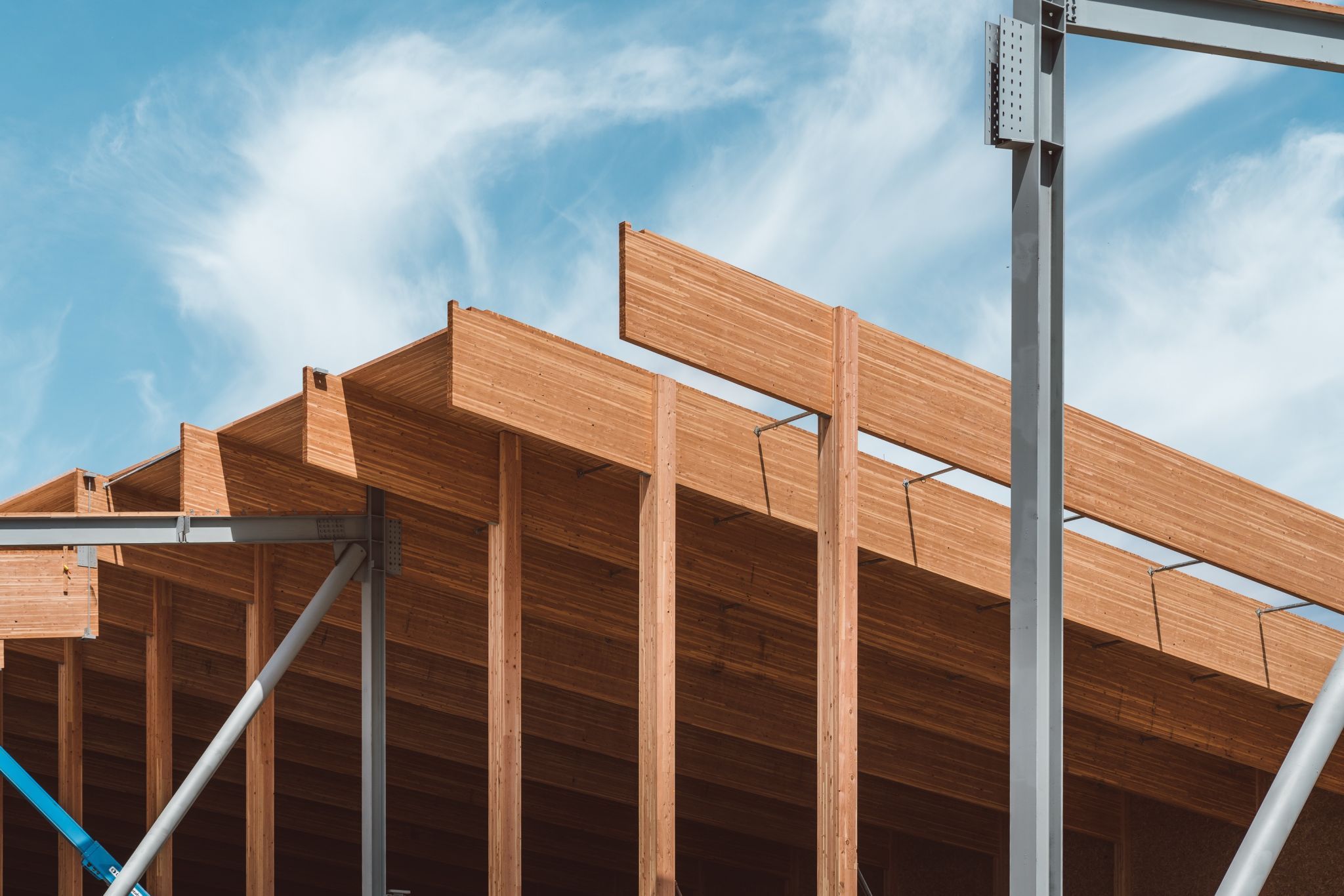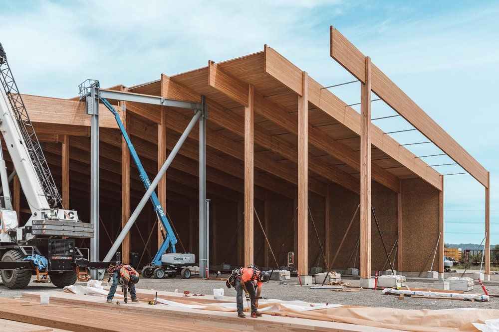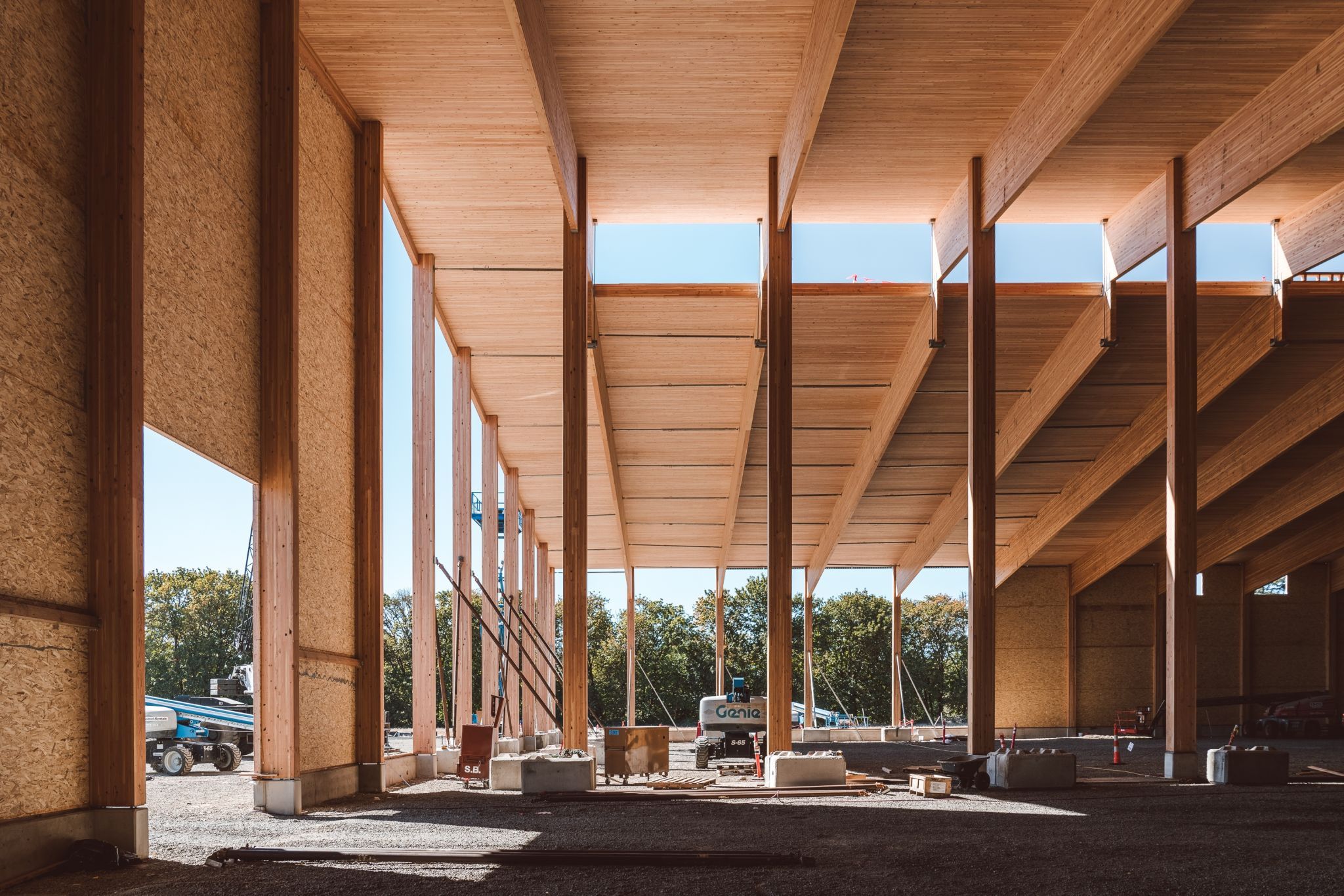 CLT-Produktionshalle mit großer Spannweite und viel Platz