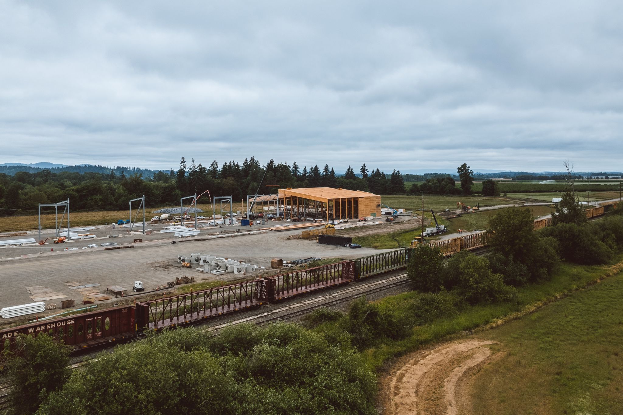 Auf der Baustelle von Timberlabs neuem Brettsperrholz-Werk in Millersburg/Oregon (USA) wurde am 20. November Richtfest gefeiert. Millersburg liegt rund 1,5 h südwestlich von Portland (Oregon) und 20 Meilen südlich von Oregons Hauptstadt Salem. Millersburg war ursprünglich der Name eines Bahnhofs an der Southern-Pacific-Eisenbahnlinie, der nach einer örtlichen Bauernfamilie benannt war. Timberlab ist ein Unternehmen der Swinerton-Gruppe. Die Investition stellt eine bedeutenden Kapazitätsaufbau für Brettsperrholz (CLT) in den USA dar. Swinerton beziffert die geplante mögliche Produktionskapazität an BSP-Tafeln mit 100.000 m³ pro Jahr. Das Spektrum der geplanten Plattenstärken reicht von 5 bis 30 cm, der Produktionsausstoß zwischen 650.000 und 835.000 m² Fläche pro Jahr.