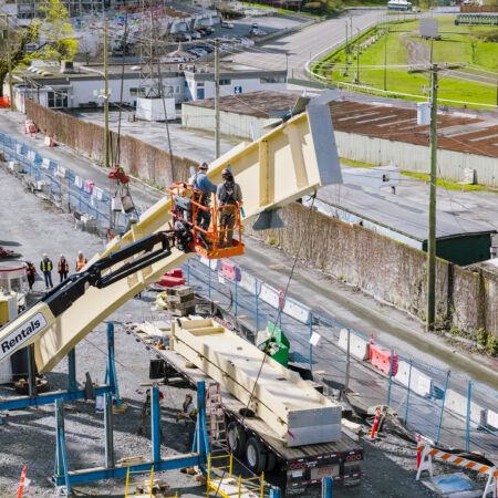 Seit Juni läuft auf der PNE-Amphitheater-Baustelle in Vancouver B/C die Montage einer der weltgrößten Holzdachkonstruktionen - mit einer künftigen Spannweite von 104 Metern! Die westkanadische Metropole setzt seit 2024 nach den Plänen von Revery Architecture Inc. und den Tragwerksplanern Fast + Epp die Überdachung und Kapazitätserweiterung der PNEFreiluftbühne im Osten der Stadt um. Damit soll sich zur FIFA-Weltmeisterschaft 2026 in Nordamerika die Attraktivität und im Anschluss daran vor allem auch die Auslastung des Veranstaltungsortes übers Jahr hinweg verbessern.