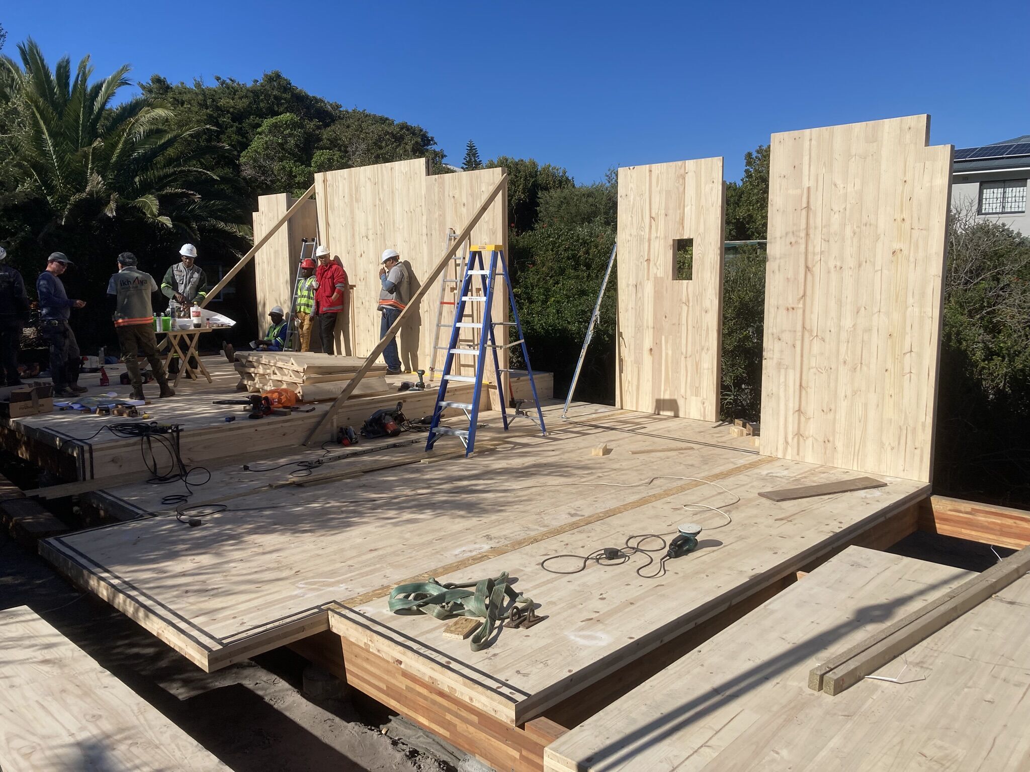 Heute stellen wir ein Bauprojekt aus Südafrika vor. Auf einem Grundstück am Nordrand des Tafelbergparks in Scarborough, knapp 50 km südlich vom Altstadtzentrum Kapstadts entfernt, entsteht für einen privaten Auftraggeber ein Wohnhaus in Holz-Elementbauweise – und mit Blick auf den Südatlantik. Es ist gleichzeitig ein Beispiel für einfaches bzw. einfacheres Bauen und auch eines für eine an das regionale Klima angepasste Bauweise.