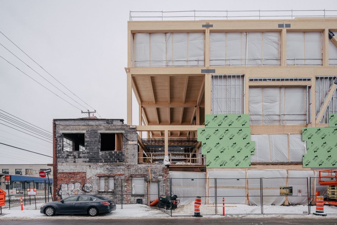 Heraus gekommen ist ein hybrider Entwurf mit ökologischem Ansatz, der darauf abzielte, den CO₂-Fußabdruck des Projekts möglichst gering zu halten. Gleichzeitig ermöglichte er mit viel Sichtholz und vergrößerten Spannweiten eine einladende Umgebung, die in Montreal neue Maßstäbe für Begegnungsräume für Kunst und Handwerk setzt. Eine besondere Herausforderung stellte dabei die Einbindung des erhaltenswerten Bestands und wieder verwendbarer Teile der ursprünglichen Struktur in die Holzkonstruktion dar.