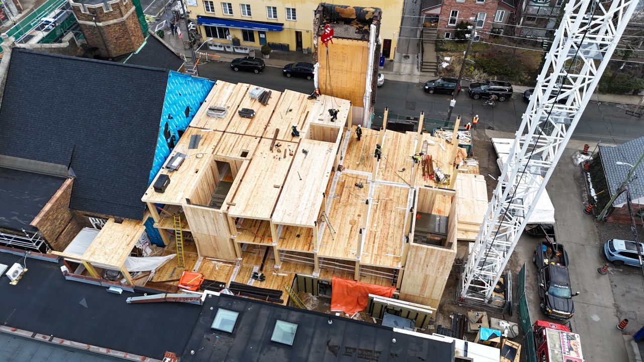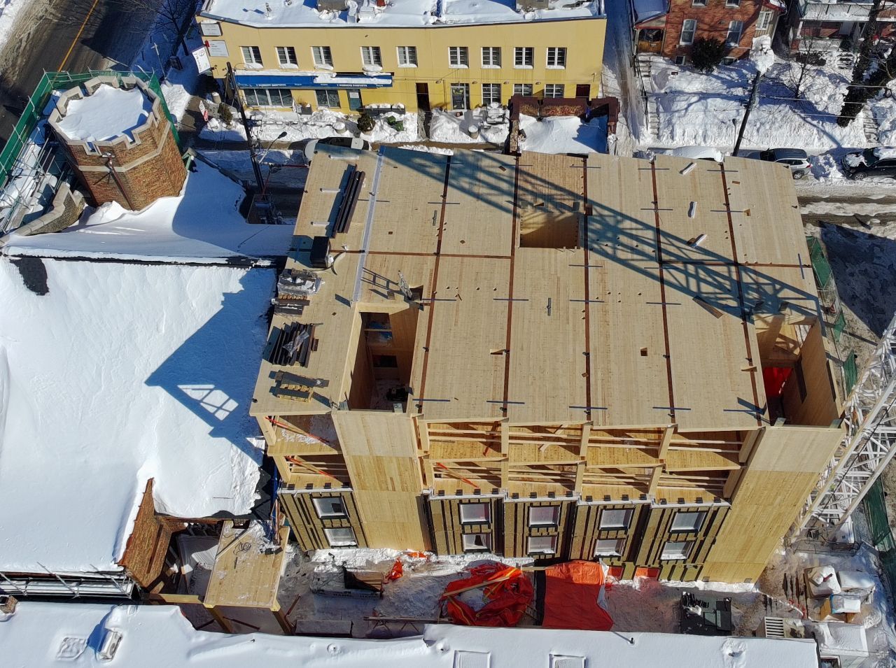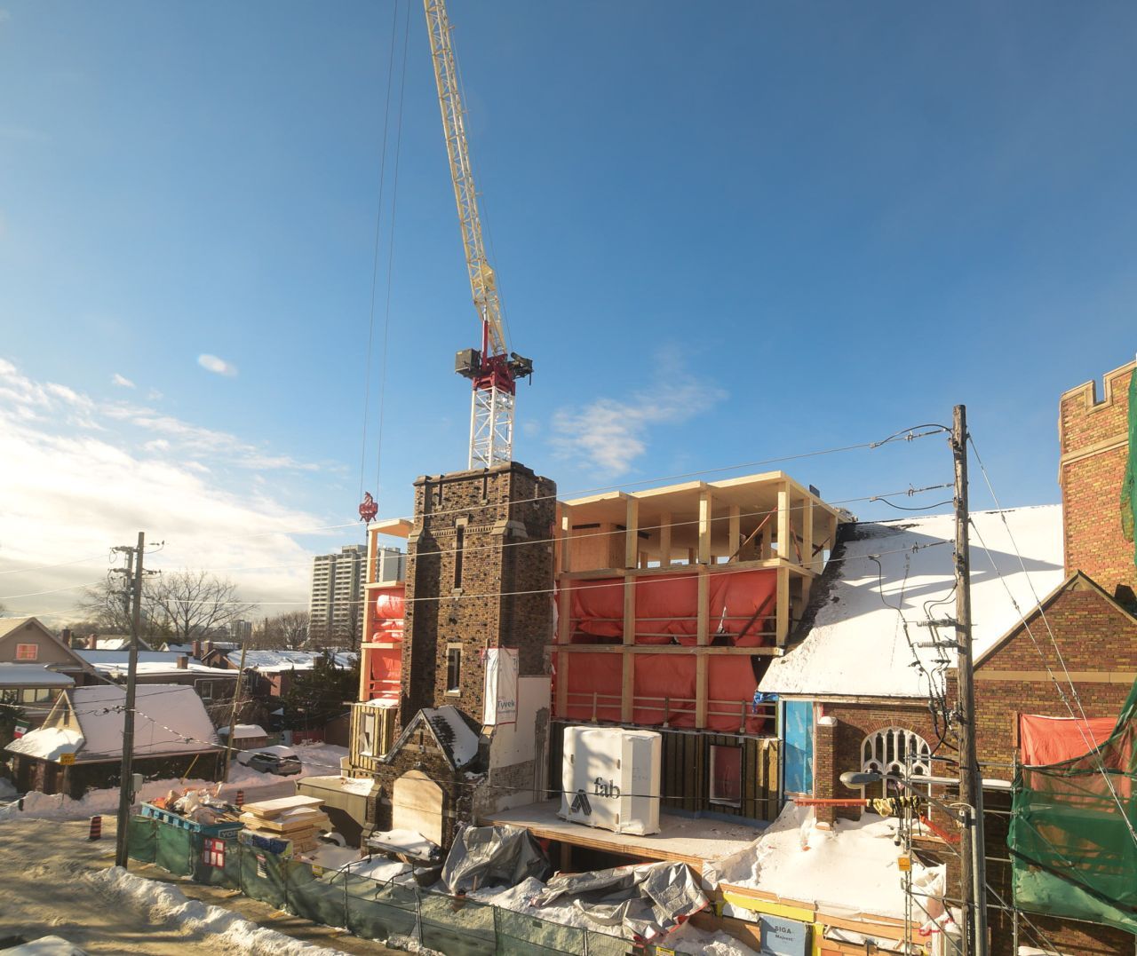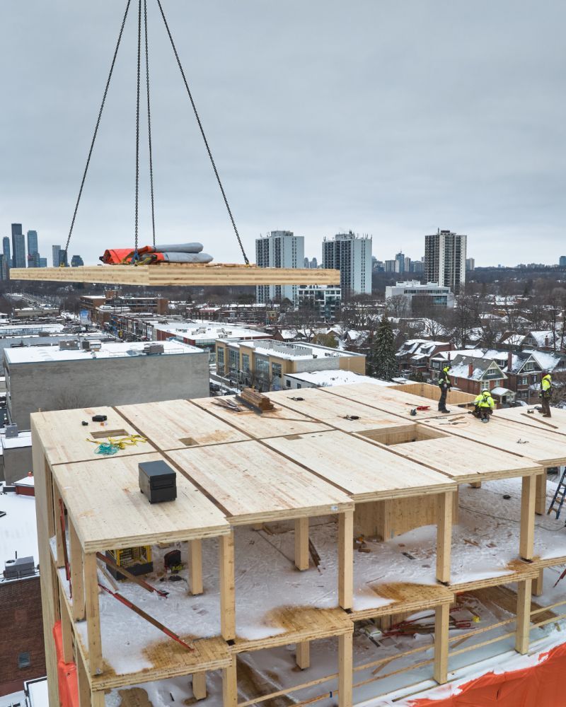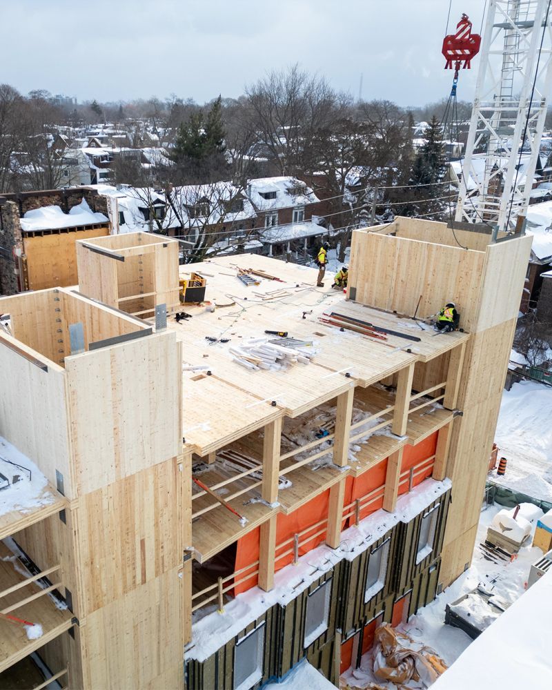 Um das Angebot an dauerhaftem Wohnraum für die rasch wachsende Gruppe bedürftiger Senioren unter Torontos Bevölkerung zu verbessern, hat Wood Green Community Services als Bauherrin die Firma Assembly Corp. mit der Entwicklung eines schnell zu errichtenden Holz-Achtgeschossers beauftragt. Mitte Februar wurde Richtfest gefeiert. Die Finanzierung des Projekts erfolgte mit Hilfe von Spenden sowie städtischen und staatlichen Zuschüssen.